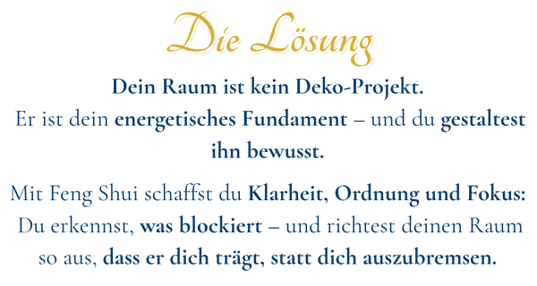 Es ist Zeit, deinen Raum so zu gestalten, dass er dich wieder an das erinnert, was in dir steckt: Klarheit, Kraft, Richtung. Feng Shui kombiniert alte Weisheit mit deinem eigenen Gefühl – wie ein klare Linie, die dein Business wieder auf ‚Erfolg nach deinen Regeln‘ ausrichtet.